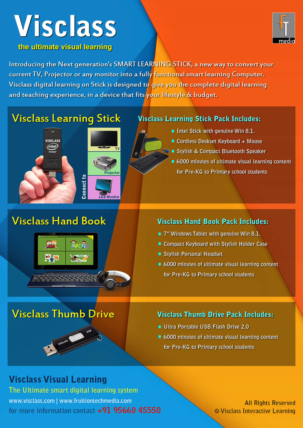 Visclass is a learning system or style where the learner better understands and retains information when ideas, words and concepts are associated with images, text, animated visuals and observable audio.